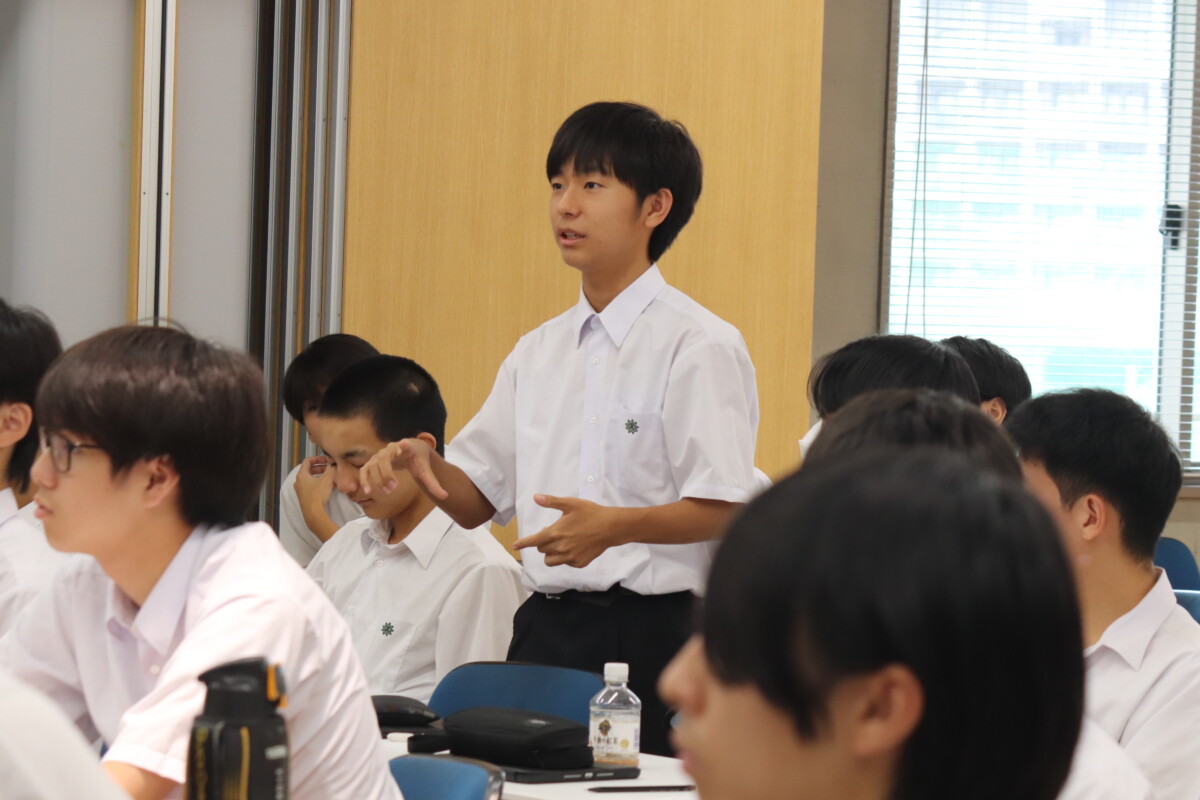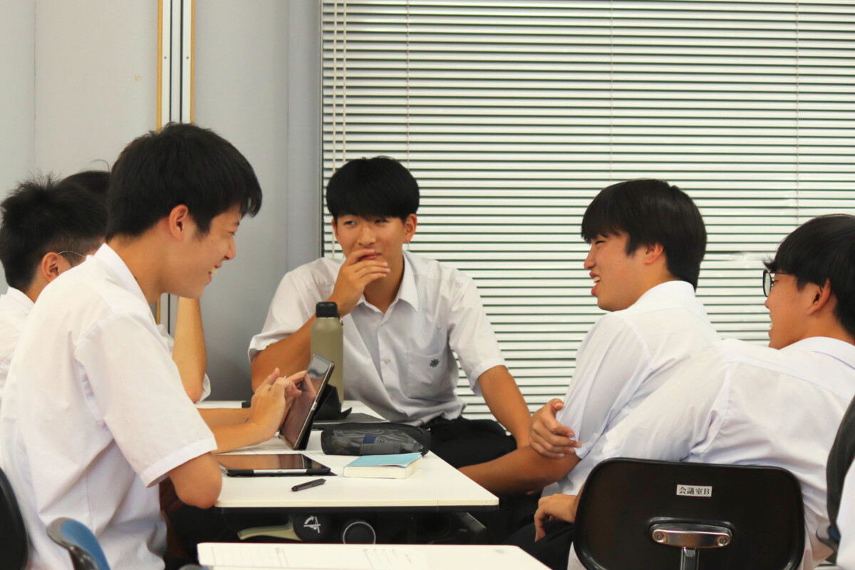 生徒のアイデアから出た新しい法案として「男性専用車両の導入」をテーマにグループディスカッションを実施しました。