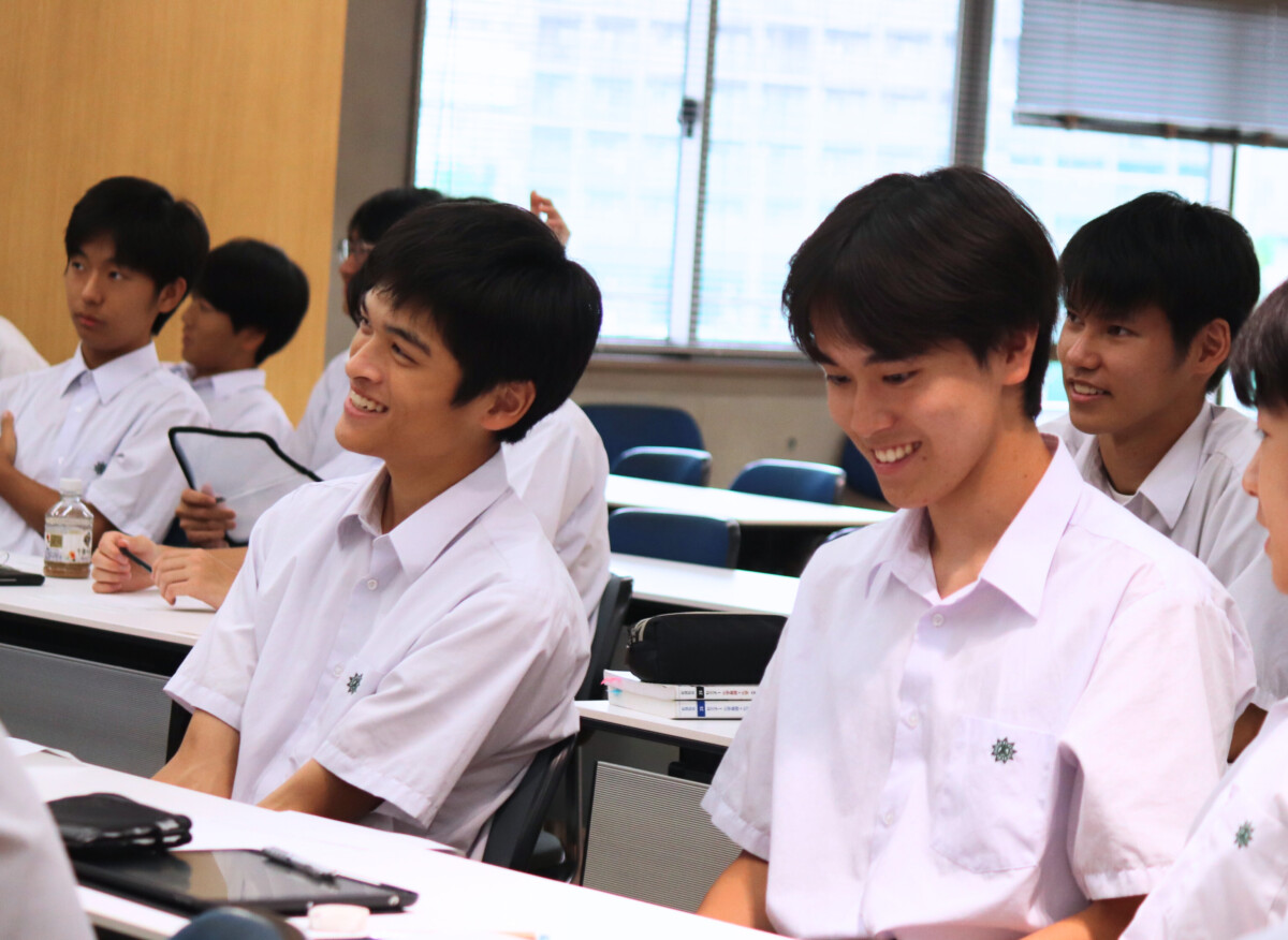 講義の後半には、将来弁護士に興味のある生徒もおり、生徒から多くの質問が寄せられました。稲吉弁護士は一つ一つ丁寧に答えてくださり、法曹の世界をより身近に感じる機会となりました。