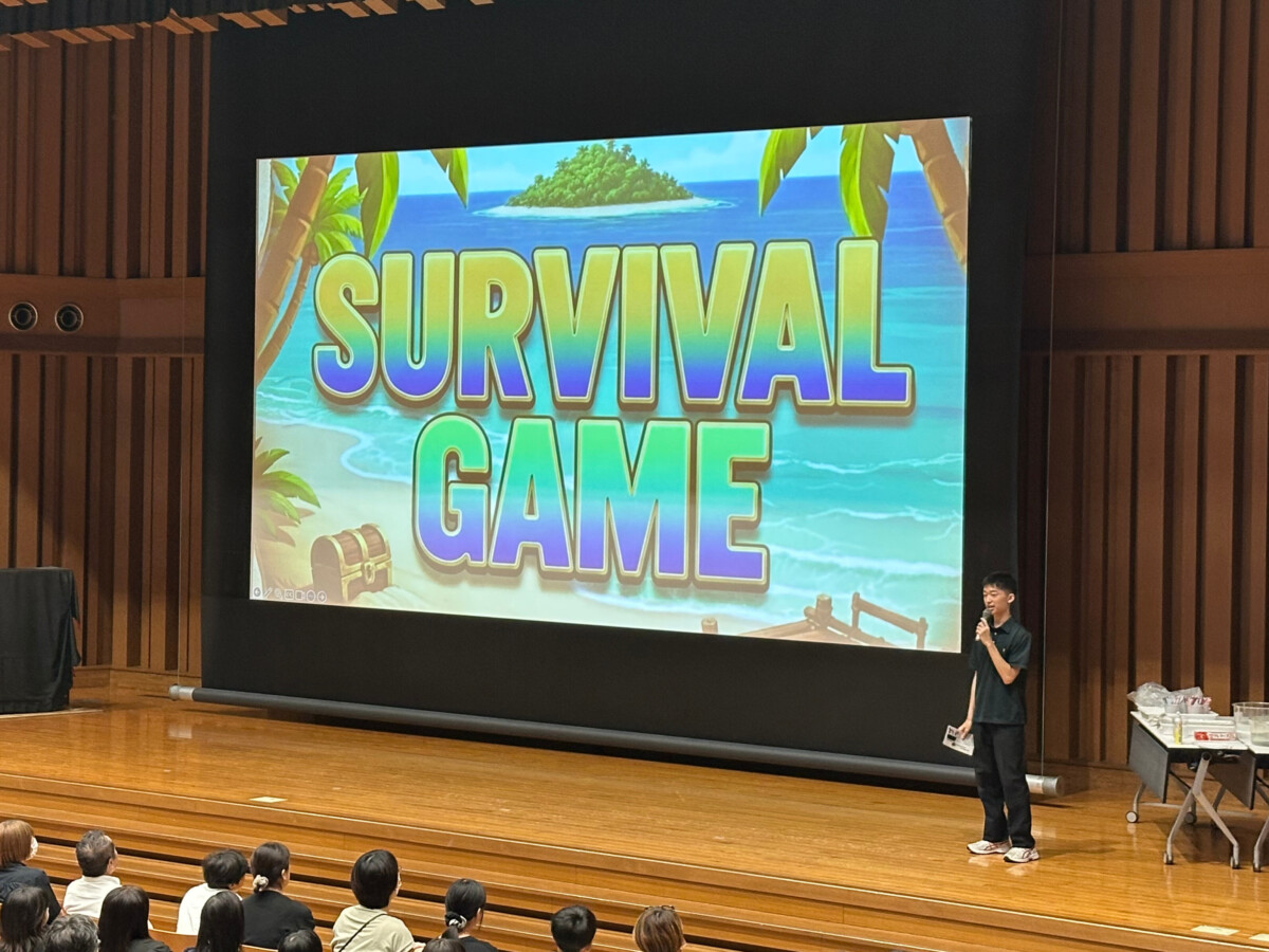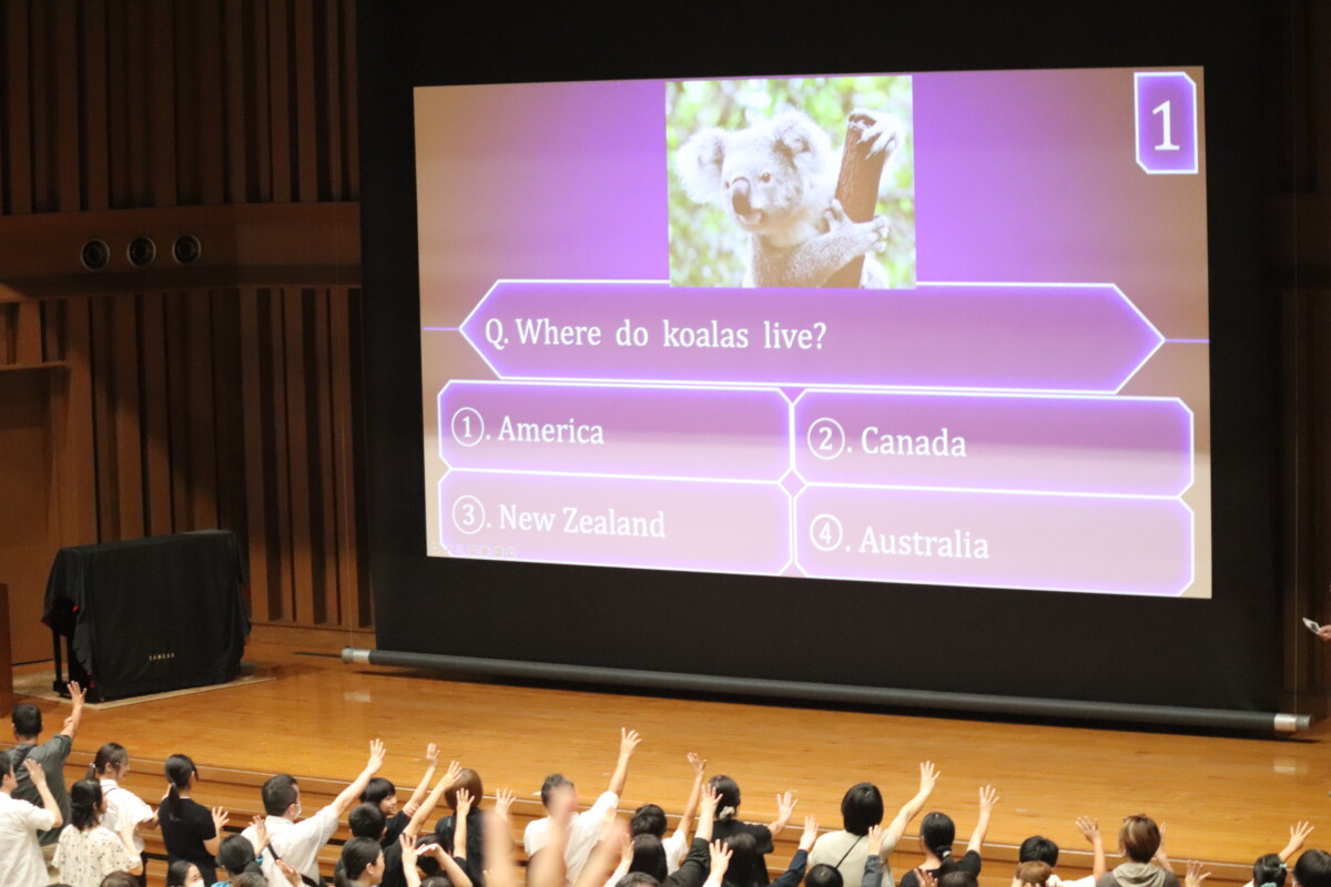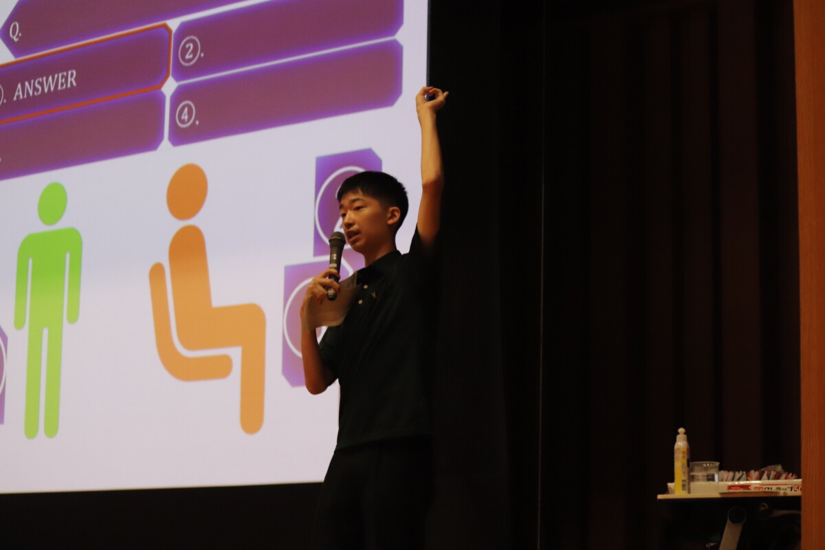 :生徒進行の英語によるクイズ形式で進行し、「入部者数が最も多い部活動は?」といった問題に参加者の皆さんにも挑戦していただきました。