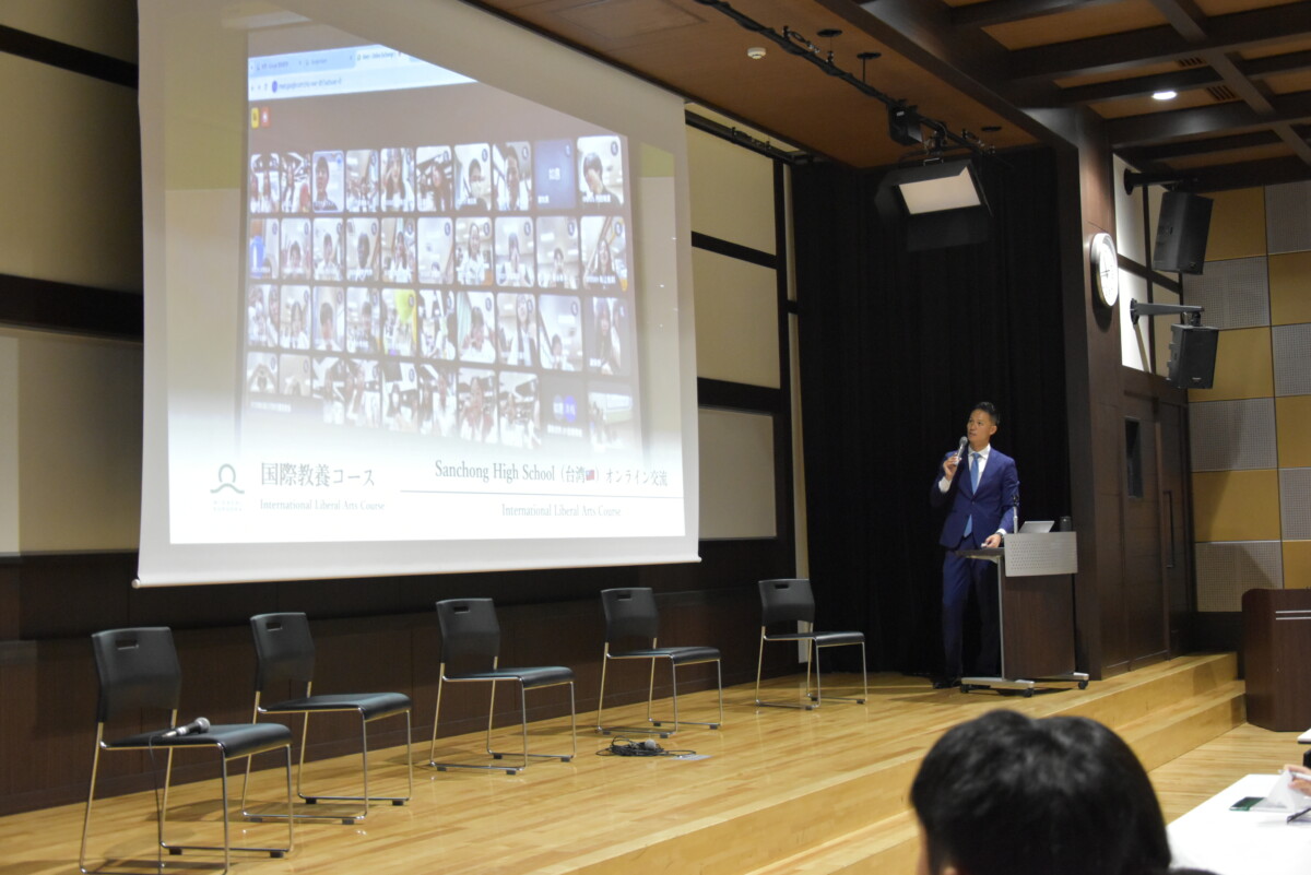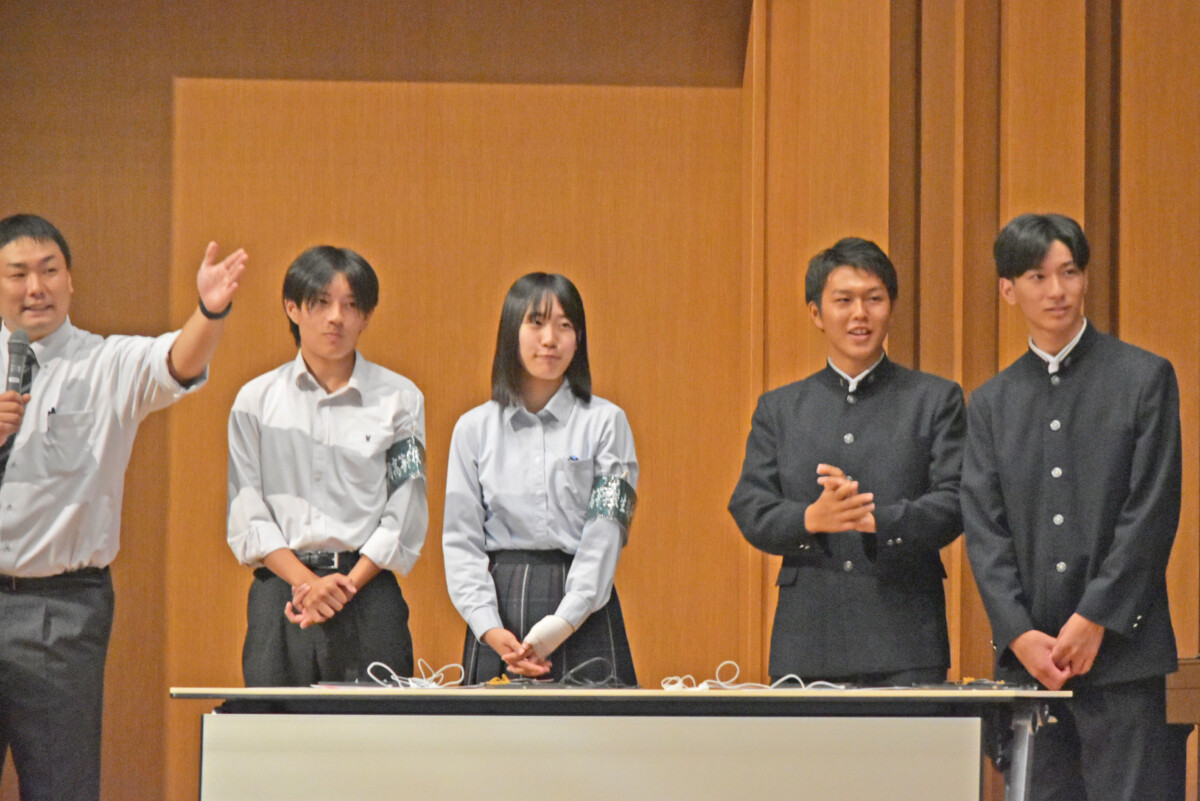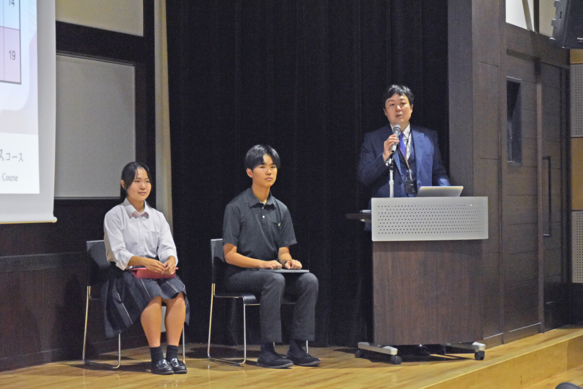 全体会では学校説明に加えて、生徒会の有志で運営している「ヒガシアンバサダー」の生徒たちが企画した「ヒガシクイズ」を行いました。