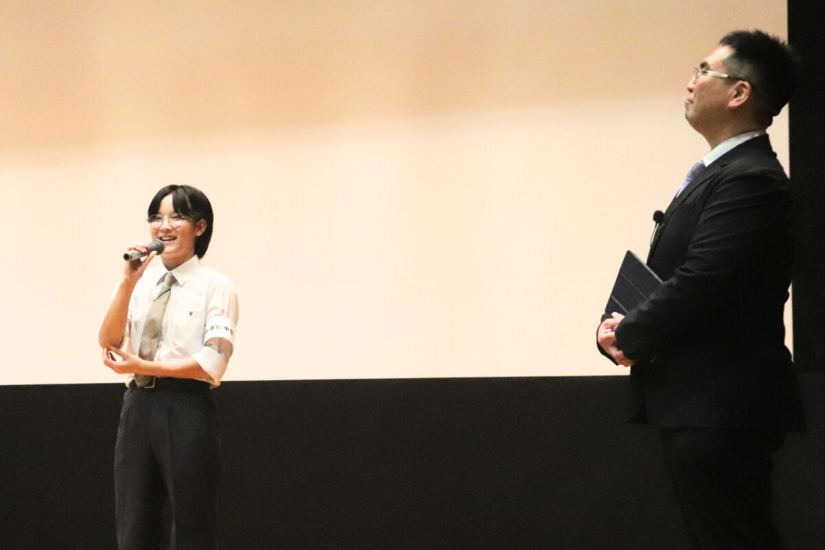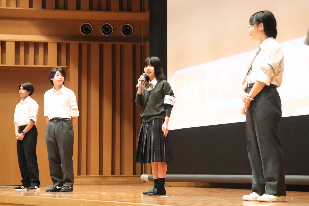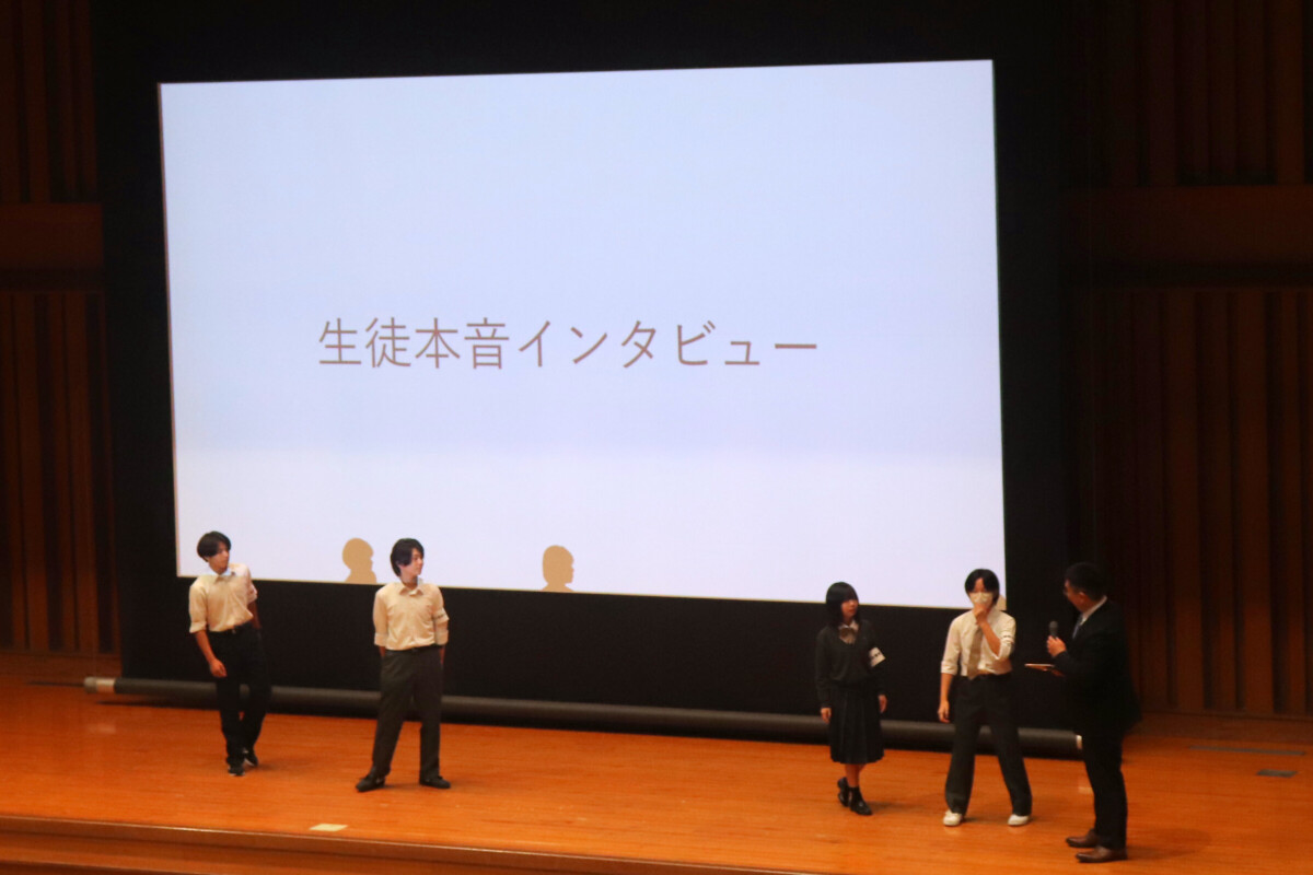 在校生による本音トーク会では代表生徒がステージに登壇し、司会者のほか、来場者からの質問に本音で回答しました。