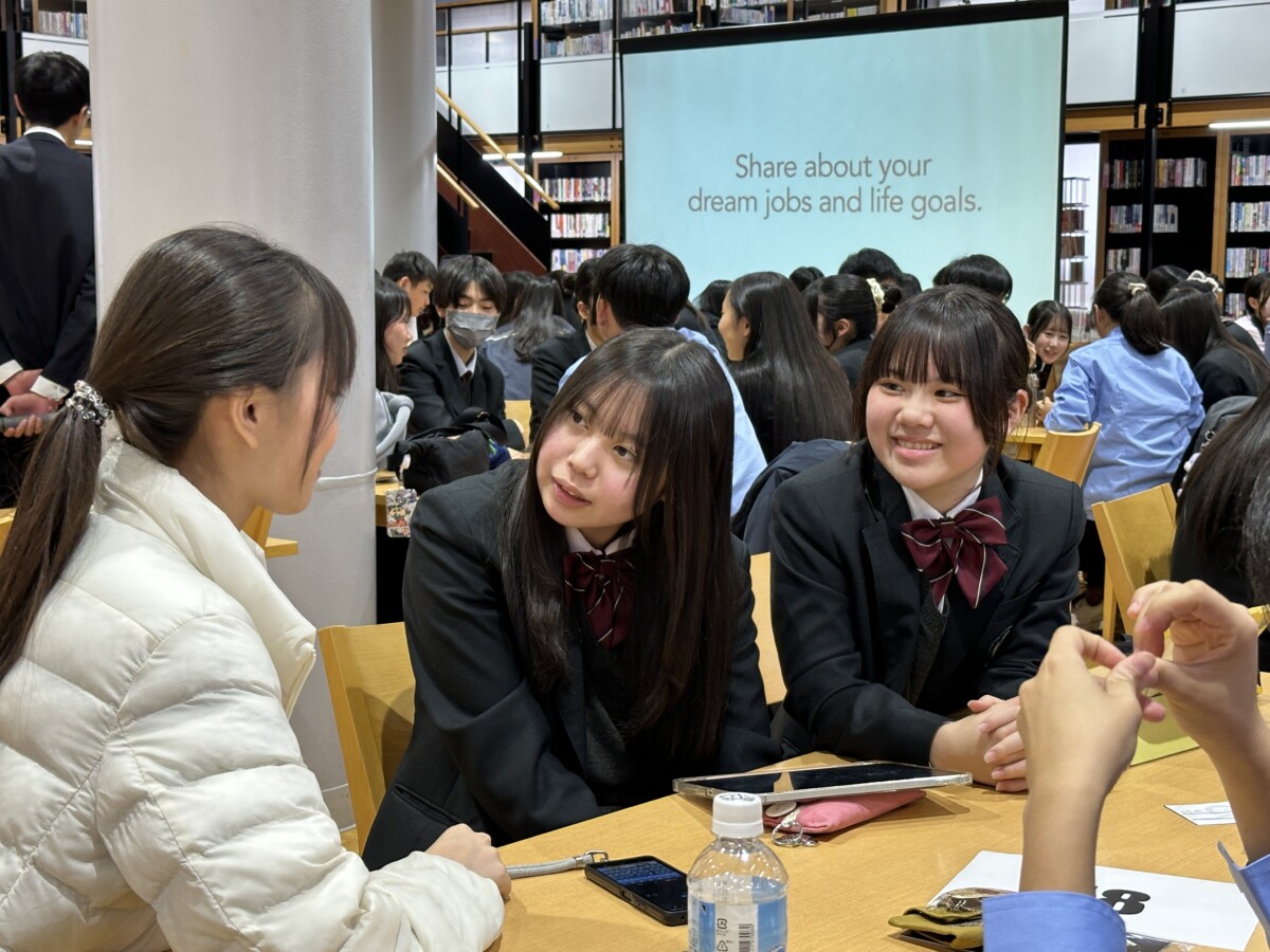 生徒たちによる校舎案内や互いの学校紹介を通して次第に打ち解けていき、ミニゲームやディスカッションでは、笑顔が飛び交う時間となりました。