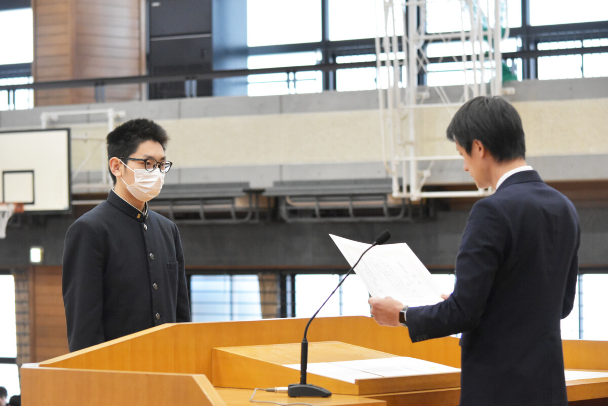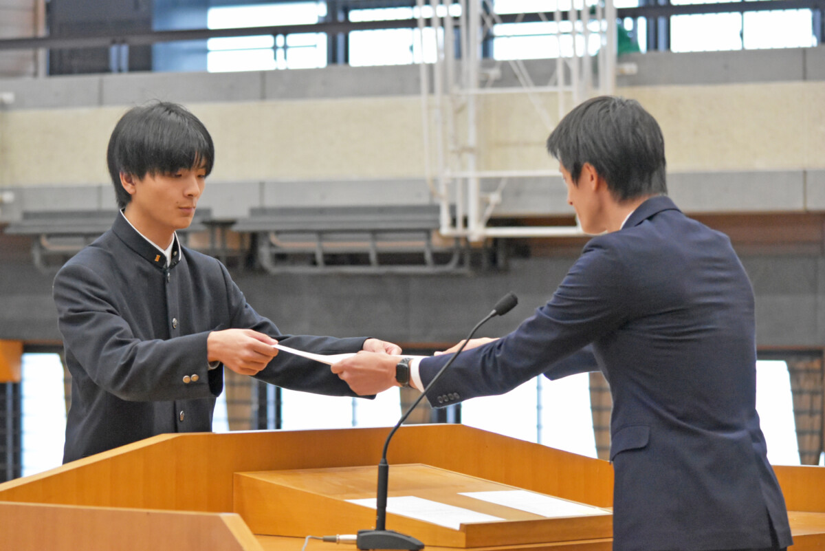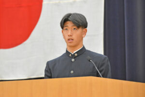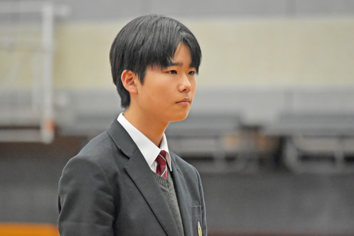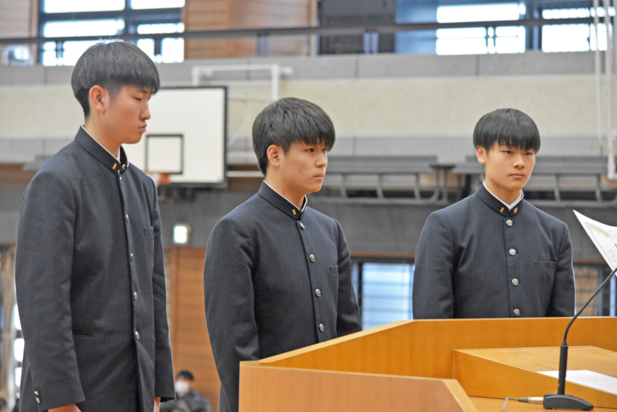 德野慎一郎学校長は、「3学期は1年の締めくくりであり、皆さんにとって次のステージへの大切な準備期間。1年生は高校生の土台を作り、2年生は3年生目前となり、進路を真剣に考える時期、3年生は進路実現に向けて最後の挑戦をするとき。それぞれの学年で重要な期間となります。失敗を恐れずにぜひ挑戦してほしい、挑戦をする人だけが未来を切り開けると思っています。」と挨拶をしました。