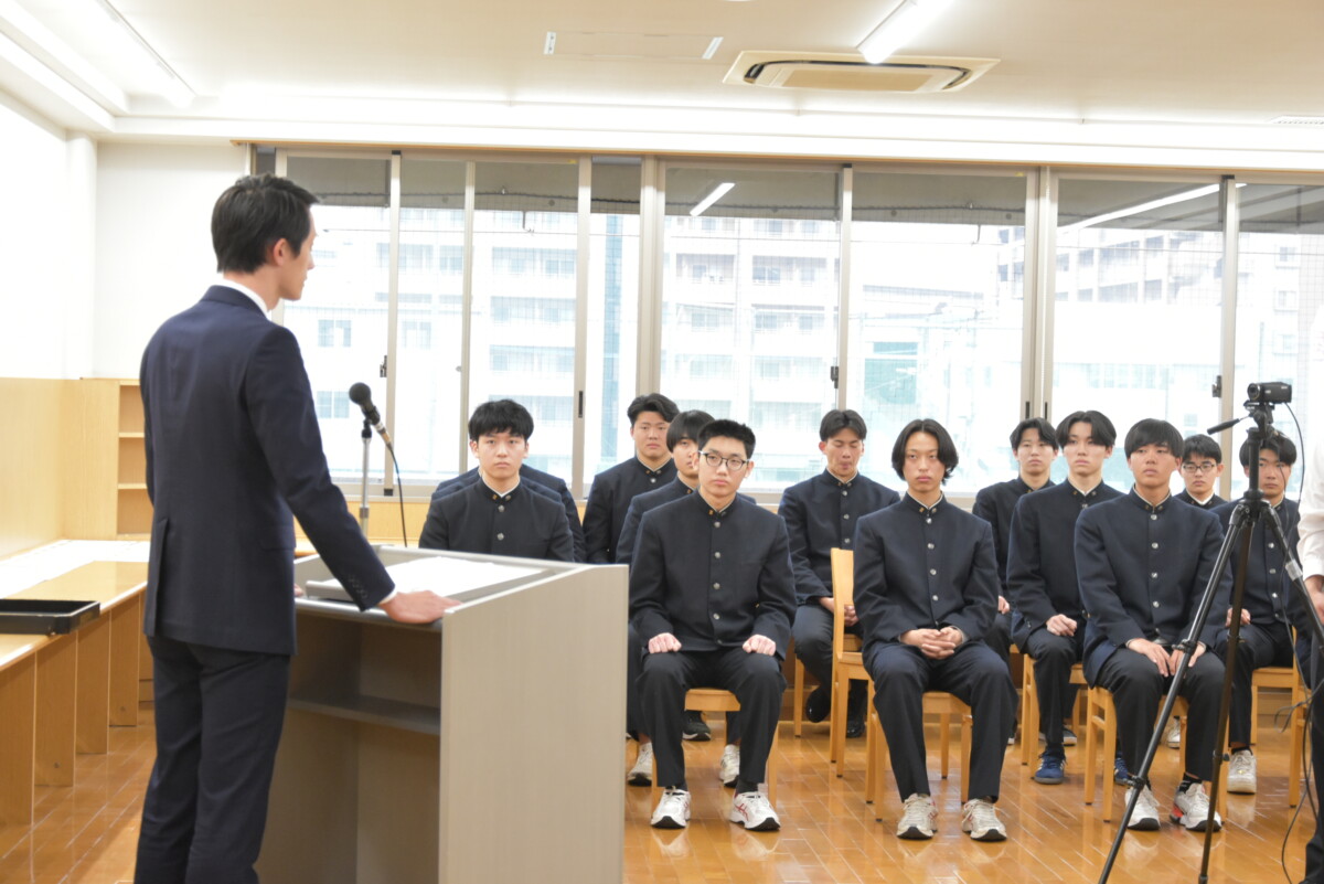 「伝統ある東福岡高校の同窓会に入会できたことを喜ばしく誇りに思います。私たち69期は、東福岡高校にとって大きな節目になる年を先頭に立って歩んできました。その経験を糧に、同窓会においてもこれまで署先輩方が築いてきた伝統を尊重しながら、私たちらしい新たな風を吹き込める存在となれるよう努めていきます。」と挨拶を行いました。