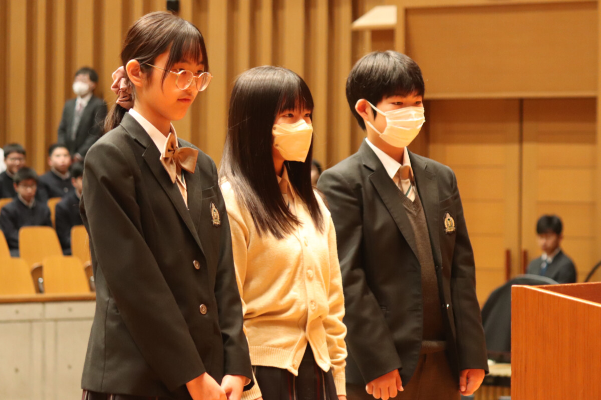 また、新年度のスタートにあたり「なりたい自分」に向けた具体的な目標を立て、日々の小さな行動を継続することの大切さや、失敗を恐れず主体的に挑戦する姿勢についてお話があり、生徒たちは飛躍の一年に向けて決意を新たにしました。