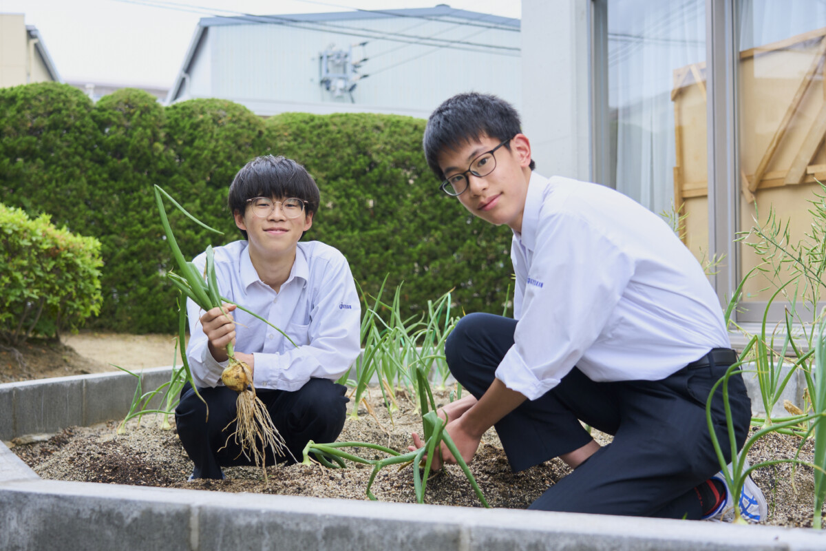 食堂から出た生ごみを、コンポストを使って堆肥化しています。堆肥は自彊館コース21期生の有志が中心に立ち上げた校内の畑(Jファーム)で農作物を育てるのに利用します。その志を生徒会執行部と生活委員が引き継ぎ、運営を続けています。最終的には収穫したものを加工・販売することを目標としています。
